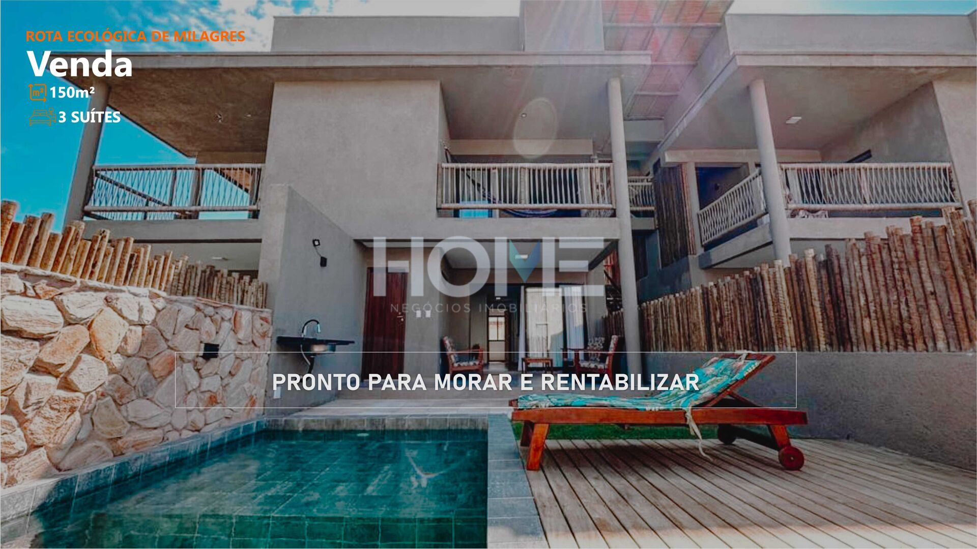 E não é só isso! A posição solar é o famoso "Sol da manhã", perfeito para acordar com o pé direito e começar o dia com muita energia. Além disso, a casa conta com uma piscina para se refrescar nos dias quentes e relaxar depois de um longo dia de trabalho.
