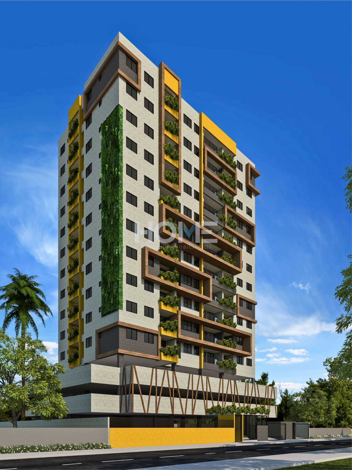 Um verdadeiro edifício verde! O jardim suspenso na lateral prédio trará benefícios que vão além da exuberante beleza de sua flora. Impactará diretamente na eficiência energética do Jardins Eulina.