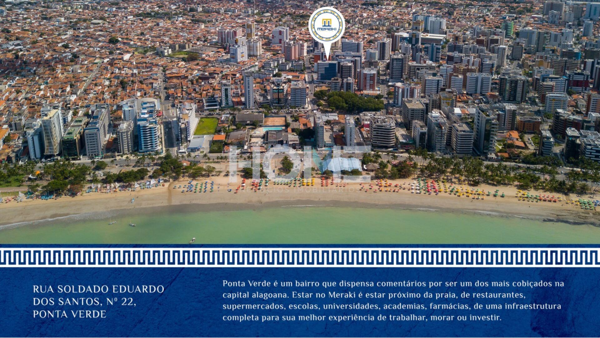 Ponta Verde é um bairro que dispensa comentários por ser um dos mais cobiçados na capital alagoana. Estar no Meraki é estar próximo da praia, de restaurantes, supermercados, escolas, universidades, academias, farmácias, de uma infra estrutura completa para a sua melhor experiência de trabalhar, morar ou investir.