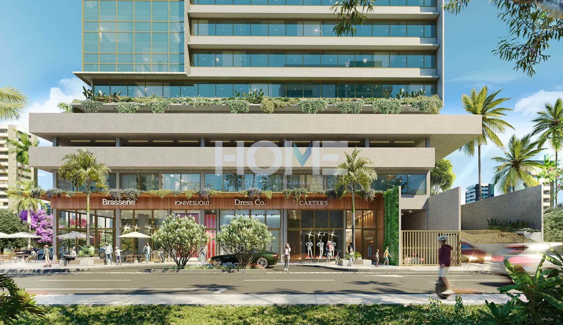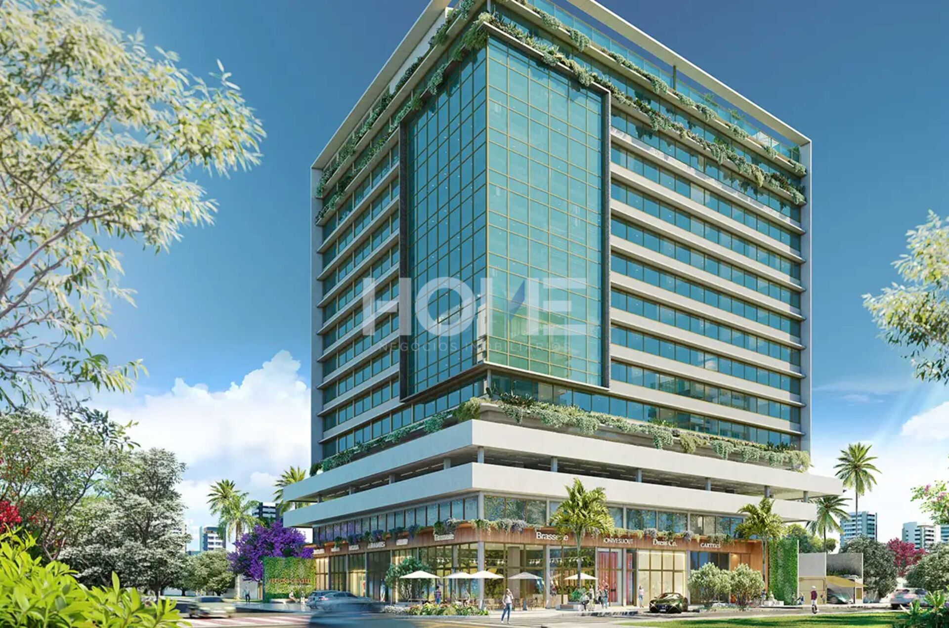 - Tecnologia e Conveniência: O prédio conta com vagas para carros elétricos, coworking, sala de reuniões e um Street Mall no térreo (Brasserie). São diferenciais que combatem a obsolescência imobiliária e aceleram a valorização patrimonial.